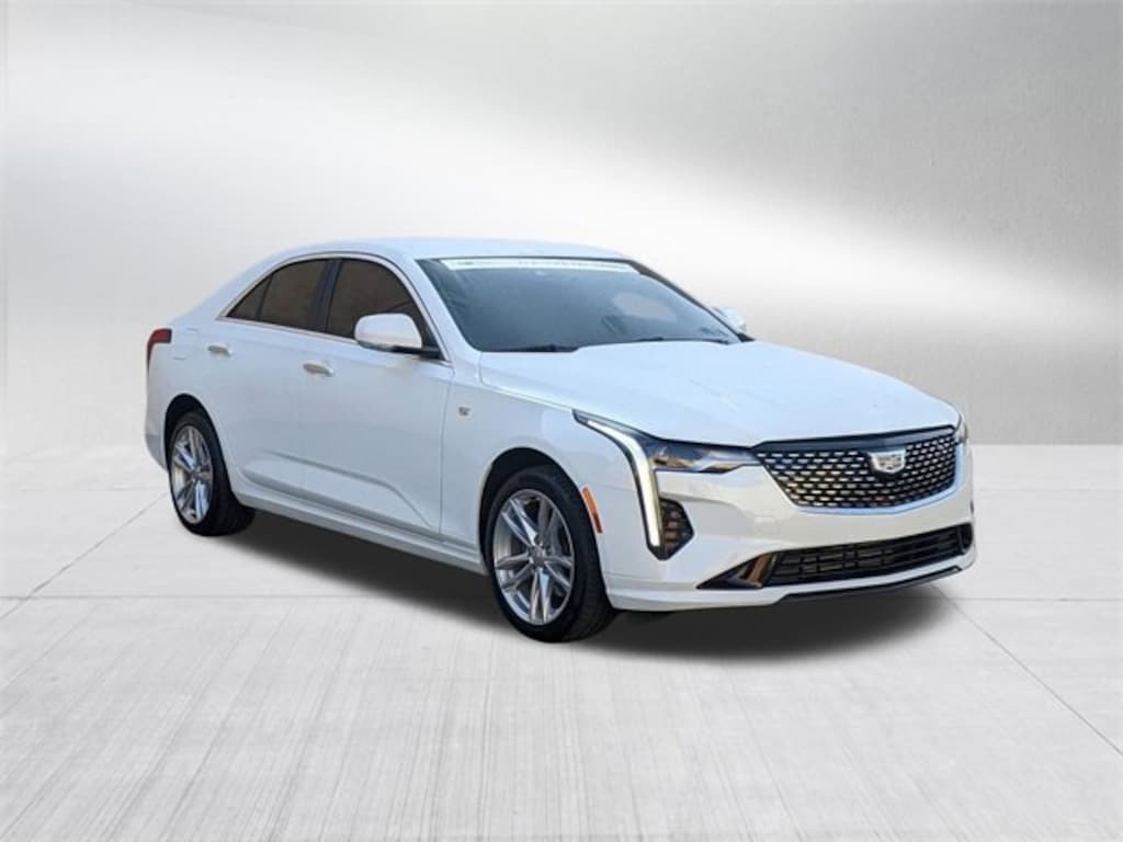 Certified. Summit White 2023 Cadillac CT4 Luxury 8-Speed Automatic 2.0L Turbocharged Cadillac Certified Pre-Owned Certified, Apple CarPlay/Android Auto, Automatic temperature control, Cold Weather Package, Exterior Parking Camera Rear, Heated Driver & Front Passenger Seats, Heated Steering Wheel, Preferred Equipment Group 1SB, 4-Wheel Disc Brakes, 8 Speakers, ABS brakes, Air Conditioning, Alloy wheels, AM/FM radio: SiriusXM, Anti-whiplash front head restraints, Auto High-beam Headlights, Automatic Stop/Start w/Disable, Brake assist, Bumpers: body-color, Compass, Delay-off headlights, Driver 2-Way Power Lumbar Seat Adjuster, Driver door bin, Driver vanity mirror, Dual front impact airbags, Dual front side impact airbags, Electronic Stability Control, Emergency communication system: OnStar and Cadillac connected services capable, Four wheel independent suspension, Front anti-roll bar, Front Bucket Seats, Front Center Armrest, Front dual zone A/C, Front reading lights, Fully automatic headlights, HD Radio, Heated door mirrors, Illuminated entry, Inteluxe Seats, Knee airbag, Leather Shift Knob, Leather steering wheel, Low tire pressure warning, Occupant sensing airbag, Outside temperature display, Overhead airbag, Overhead console, Panic alarm, Passenger door bin, Passenger vanity mirror, Power door mirrors, Power driver seat, Power passenger seat, Power steering, Power windows, Premium 8-Speaker Audio System Feature, Radio data system, Radio: Cadillac User Experience, Rear anti-roll bar, Rear reading lights, Rear seat center armrest, Rear window defroster, Remote keyless entry, SiriusXM w/360L, Speed control, Speed-sensing steering, Split folding rear seat, Steering wheel mounted audio controls, Tachometer, Telescoping steering wheel, Tilt steering wheel, Traction control, Trip computer, Turn signal indicator mirrors, Variably intermittent wipers, Voltmeter, Wheels: 17 Alloy w/Bright Silver Finish, Apple CarPlay/Android Auto, Automatic temperature control, Cold Weather Package, Exterior Parking Camera Rear, Heated Driver & Front Passenger Seats, Heated Steering Wheel, Preferred Equipment Group 1SB.22/31 City/Highway MPGCadillac Certified Pre-Owned Details:* Warranty Deductible: $0* Transferable Warranty* 172 Point Inspection* Limited Warranty: 12 Month/Unlimited Mile (whichever comes first) after new car warranty expires or from certified purchase date* Roadside Assistance* Vehicle History* Courtesy transportation & 24 hour Roadside Assistance for the life of the warranty and stringent 172-point inspection & reconditioning process. SiriusXM 3-month trial subscription.
