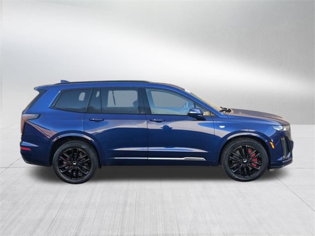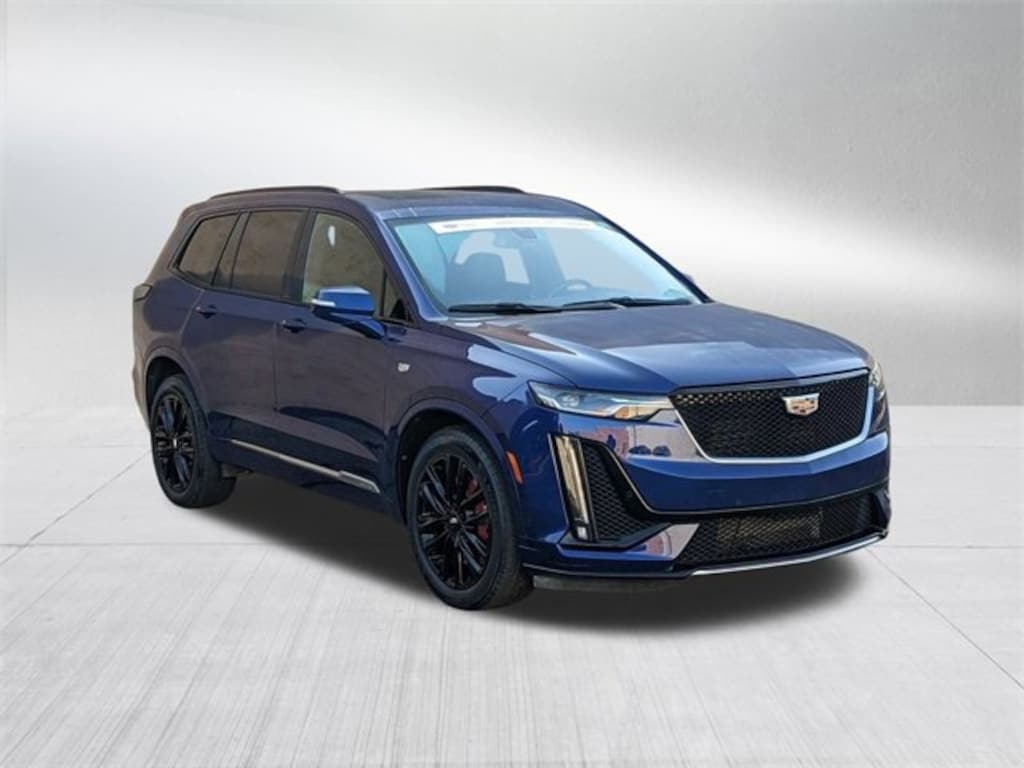 Certified. Opulent Blue Metallic 2023 Cadillac XT6 Sport 9-Speed Automatic 3.6L V6 DI VVT Cadillac Certified Pre-Owned Certified, Automatic Emergency Braking, Automatic temperature control, Bose Performance Series Audio System, Driver & Front Passenger Heated Seats, Dual Driver Info Center Display Gauge Cluster, Front & Rear Park Assist, Heated rear seats, Heated steering wheel, Inside Rear-View Auto-Dimming Mirror, Leather Seating Surfaces w/Mini-Perforated Inserts, Navigation System, Power Liftgate, Power moonroof: UltraView, Radio: Cadillac User Experience w/Embedded Nav, Rain sensing wipers, Remote keyless entry, SiriusXM w/360L, Sport Package 1SF, Teen Driver, Ventilated Driver & Front Passenger Seats, 14 Speakers, 2-Way Power Driver Lumbar Control Seat Adjuster, 2-Way Power Passenger Lumbar Control Seat Adjuster, 3.49 Axle Ratio, 3rd row seats: split-bench, 4-Wheel Disc Brakes, 6-Passenger Seating, 8-Way Power Driver Seat Adjuster, ABS brakes, Adaptive suspension, Air Conditioning, Alloy wheels, AM/FM radio: SiriusXM with 360L, Audio memory, Auto High-beam Headlights, Auto tilt-away steering wheel, Auto-dimming door mirrors, Auto-dimming Rear-View mirror, Automatic Stop/Start w/Disable, Body-Color Door Handles, Brake assist, Bumpers: body-color, Compass, Delay-off headlights, Driver door bin, Driver vanity mirror, Dual front impact airbags, Dual front side impact airbags, Electronic Stability Control, Emergency communication system: OnStar and Cadillac connected services capable, Four wheel independent suspension, Front anti-roll bar, Front Bucket Seats, Front Center Armrest, Front dual zone A/C, Front reading lights, Fully automatic headlights, Garage door transmitter, Heated door mirrors, Heated front seats, Illuminated entry, Knee airbag, Low tire pressure warning, Memory seat, Occupant sensing airbag, Outside temperature display, Overhead airbag, Overhead console, Panic alarm, Passenger door bin, Passenger vanity mirror, Performance Suspension, Power door mirrors, Power driver seat, Power passenger seat, Power steering, Power windows, Radio data system, Rear air conditioning, Rear anti-roll bar, Rear reading lights, Rear seat center armrest, Rear window defroster, Rear window wiper, Roof rack: rails only, Security system, Speed control, Speed-sensing steering, Split folding rear seat, Spoiler, Steering wheel memory, Steering wheel mounted audio controls, Tachometer, Telescoping steering wheel, Tilt steering wheel, Traction control, Trip computer, Turn signal indicator mirrors, Variably intermittent wipers, Ventilated front seats, Voltmeter, Wheels: 20 12-Spoke Diamond Cut Alloy, Wheels: 20 Gloss Black (LPO), Automatic Emergency Braking, Automatic temperature control, Bose Performance Series Audio System, Driver & Front Passenger Heated Seats, Dual Driver Info Center Display Gauge Cluster, Front & Rear Park Assist, Heated rear seats, Heated steering wheel, Inside Rear-View Auto-Dimming Mirror, Leather Seating Surfaces w/Mini-Perforated Inserts, Navigation System, Power Liftgate, Power moonroof: UltraView, Radio: Cadillac User Experience w/Embedded Nav, Rain sensing wipers, Remote keyless entry, SiriusXM w/360L, Sport Package 1SF, Teen Driver, Ventilated Driver & Front Passenger Seats.