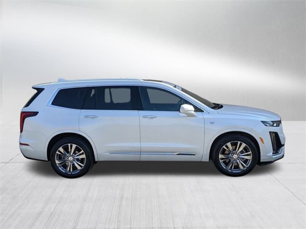 Certified. Crystal White Tricoat 2023 Cadillac XT6 Premium Luxury 9-Speed Automatic 3.6L V6 DI VVT Cadillac Certified Pre-Owned Certified, Automatic Emergency Braking, Automatic temperature control, Bose Performance Series Audio System, Driver & Front Passenger Heated Seats, Dual Driver Info Center Display Gauge Cluster, Front & Rear Park Assist, Heated rear seats, Heated steering wheel, Inside Rear-View Auto-Dimming Mirror, Leather Seating Surfaces w/Mini-Perforated Inserts, Navigation System, Power Liftgate, Power moonroof: UltraView, Premium Luxury Package 1SD, Radio: Cadillac User Experience w/Embedded Nav, Rain sensing wipers, Remote keyless entry, SiriusXM w/360L, Teen Driver, Ventilated Driver & Front Passenger Seats, 14 Speakers, 2-Way Power Driver Lumbar Control Seat Adjuster, 2-Way Power Passenger Lumbar Control Seat Adjuster, 3.49 Axle Ratio, 3rd row seats: split-bench, 4-Wheel Disc Brakes, 6-Passenger Seating, 8-Way Power Driver Seat Adjuster, ABS brakes, Air Conditioning, Alloy wheels, AM/FM radio: SiriusXM with 360L, Audio memory, Auto High-beam Headlights, Auto tilt-away steering wheel, Auto-dimming door mirrors, Auto-dimming Rear-View mirror, Automatic Stop/Start w/Disable, Brake assist, Bumpers: body-color, Compass, Delay-off headlights, Driver door bin, Driver vanity mirror, Dual front impact airbags, Dual front side impact airbags, Electronic Stability Control, Emergency communication system: OnStar and Cadillac connected services capable, Four wheel independent suspension, Front anti-roll bar, Front Bucket Seats, Front Center Armrest, Front dual zone A/C, Front reading lights, Fully automatic headlights, Garage door transmitter, Heated door mirrors, Heated front seats, Illuminated entry, Knee airbag, Low tire pressure warning, Memory seat, Not Equipped w/Front & Rear Park Assist, Occupant sensing airbag, Outside temperature display, Overhead airbag, Overhead console, Panic alarm, Passenger door bin, Passenger vanity mirror, Power door mirrors, Power driver seat, Power passenger seat, Power steering, Power windows, Radio data system, Rear air conditioning, Rear anti-roll bar, Rear reading lights, Rear seat center armrest, Rear window defroster, Rear window wiper, Ride & Handling Suspension, Roof rack: rails only, Security system, Speed control, Speed-sensing steering, Split folding rear seat, Spoiler, Steering wheel memory, Steering wheel mounted audio controls, Tachometer, Telescoping steering wheel, Tilt steering wheel, Traction control, Trip computer, Turn signal indicator mirrors, Variably intermittent wipers, Ventilated front seats, Voltmeter, Wheels: 20 6-Split Spoke Alloy, Automatic Emergency Braking, Automatic temperature control, Bose Performance Series Audio System, Driver & Front Passenger Heated Seats, Dual Driver Info Center Display Gauge Cluster, Front & Rear Park Assist, Heated rear seats, Heated steering wheel, Inside Rear-View Auto-Dimming Mirror, Leather Seating Surfaces w/Mini-Perforated Inserts, Navigation System, Power Liftgate, Power moonroof: UltraView, Premium Luxury Package 1SD, Radio: Cadillac User Experience w/Embedded Nav, Rain sensing wipers, Remote keyless entry, SiriusXM w/360L, Teen Driver, Ventilated Driver & Front Passenger Seats.