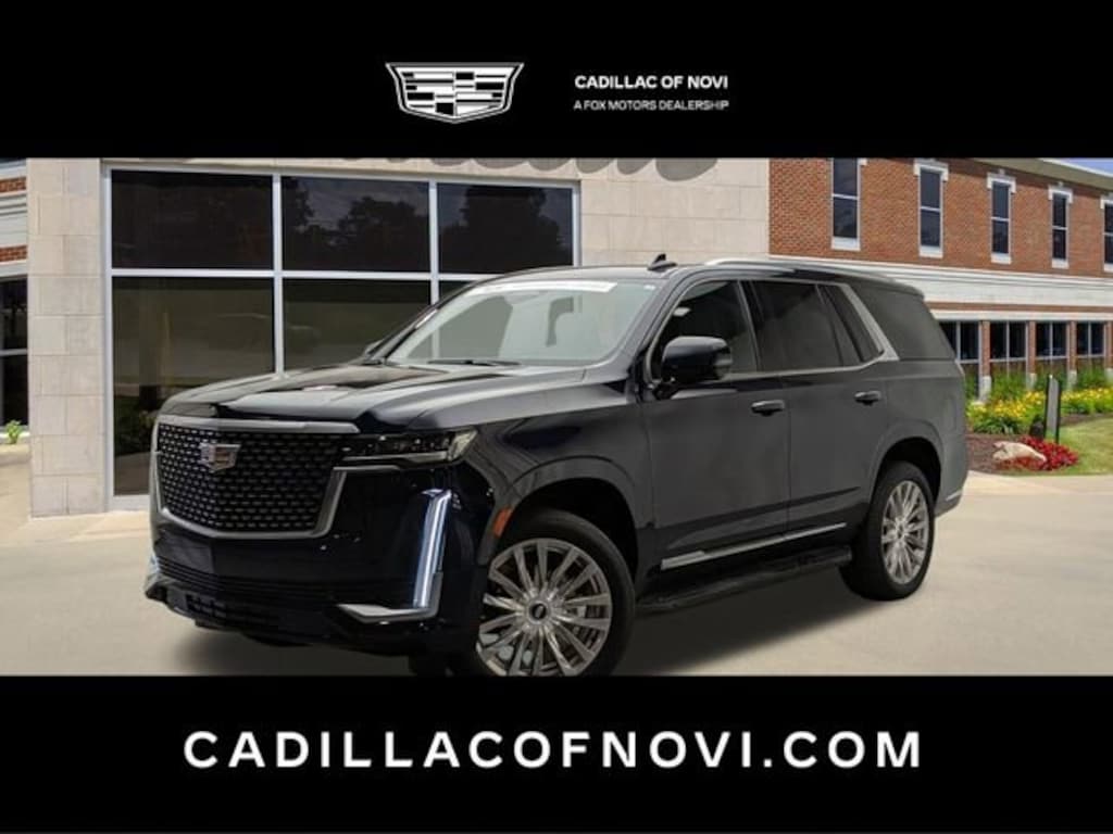 Certified. Dark Moon Blue Metallic 2024 Cadillac Escalade Premium Luxury 10-Speed Automatic 6.2L V8 Cadillac Certified Pre-Owned Certified, AWD, Black Leather, 16.9 Diagonal OLED Infotainment Screen, 19 Speakers, 2-Presets Memory For Driver Seat Adjuster, 3.23 Axle Ratio, 3rd row seats: split-bench, 4-Way Power Driver Lumbar Seat Adjuster, 4-Way Power Front Passenger Lumbar Seat Adjuster, 4-Wheel Disc Brakes, 8-Way Power Driver Seat Adjuster, 8-Way Power Front Passenger Seat Adjuster, ABS brakes, Adaptive Cruise Control, Air Conditioning, AKG Studio 19-Speaker Audio System, Alloy wheels, AM/FM radio: SiriusXM with 360L, Apple CarPlay/Android Auto, Audio memory, Auto High-beam Headlights, Auto tilt-away steering wheel, Auto-dimming door mirrors, Auto-dimming Rear-View mirror, Automatic Seat Belt Tightening, Automatic temperature control, Brake assist, Bumpers: body-color, Compass, Delay-off headlights, Door Lock & Latch Shields, Driver door bin, Driver vanity mirror, Dual front impact airbags, Dual front side impact airbags, Electronic Stability Control, Emergency communication system: OnStar and Cadillac connected services capable, Enhanced Automatic Emergency Braking, Enhanced Automatic Parking Assist, Exterior Parking Camera Rear, Four wheel independent suspension, Front anti-roll bar, Front Bucket Seats, Front Center Armrest w/Storage, Front dual zone A/C, Front reading lights, Fully automatic headlights, Garage door transmitter, Glass Breakage Sensor, HD Radio, Heads-Up Display, Heated & Ventilated Driver & Front Passenger Seats, Heated door mirrors, Heated Driver & Front Passenger Seats, Heated front seats, Heated rear seats, Heated steering wheel, Illuminated entry, Lane Change Alert w/Side Blind Zone Alert, Leather Seating Surfaces w/Mini-Chevron Perf Inserts, Low tire pressure warning, Mechanical Limited-Slip Differential, Memory seat, Navigation System, Not Equipped w/2nd Row Express-Up Window Control, Occupant sensing airbag, Outside temperature display, Overhead airbag, Overhead console, Panic alarm, Passenger door bin, Passenger vanity mirror, Power door mirrors, Power driver seat, Power Liftgate, Power moonroof, Power Panoramic Tilt-Sliding Sunroof, Power passenger seat, Power steering, Power windows, Preferred Equipment Group 1SB, Premium Smooth Ride Suspension, Puddle Lamps w/Cadillac Crest (LPO), Radio data system, Radio: AM/FM w/Navigation, Rain sensing wipers, Rear air conditioning, Rear anti-roll bar, Rear Camera Mirror, Rear Camera Mirror Washer, Rear Cross Traffic Alert, Rear reading lights, Rear window defroster, Rear window wiper, Reconfigurable Full-Color Head-Up Display, Remote keyless entry, Reverse Automatic Braking, Running Board Assist Steps, Security system, SiriusXM w/360L, Speed control, Split folding rear seat, Spoiler, Steering wheel memory, Steering wheel mounted audio controls, Tachometer, Teen Driver, Telescoping steering wheel, Theft-Deterrent Alarm System, Tilt steering wheel, Traction control, Trip computer, Turn signal indicator mirrors, Variably intermittent wipers, Vehicle Inclination Sensor, Vehicle Interior Movement Sensor, Ventilated front seats, Vertical Cargo Net (LPO), Voltmeter, Wheel Locks, Wheels: 22 14-Spoke Alloy w/Polished Finish, Wireless Apple CarPlay/Wireless Android Auto, AWD, Black Leather.