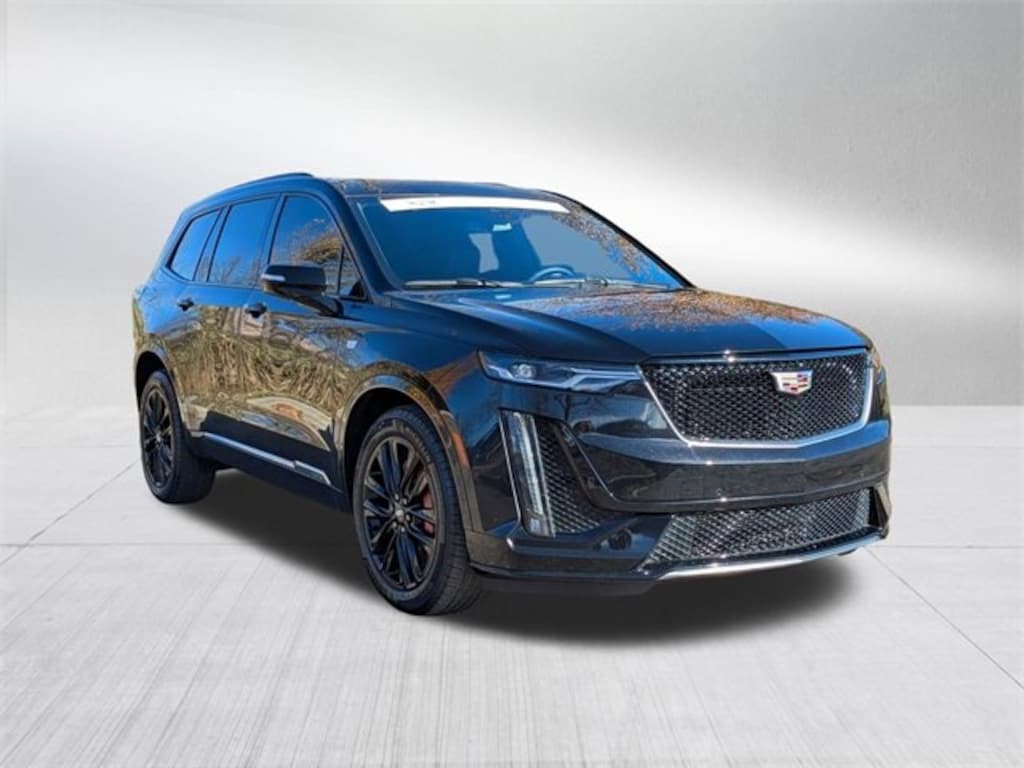 Certified. Stellar Black Metallic 2024 Cadillac XT6 Sport 9-Speed Automatic 3.6L V6 DI VVT Cadillac Certified Pre-Owned Certified, 14 Speakers, 1st, 2nd & 3rd Rows All-Weather Floor Liners (LPO), 2-Way Power Driver Lumbar Control Seat Adjuster, 2-Way Power Passenger Lumbar Control Seat Adjuster, 3.49 Axle Ratio, 3rd row seats: split-bench, 4-Wheel Disc Brakes, 6-Passenger Seating, 8-Way Power Driver Seat Adjuster, ABS brakes, Adaptive suspension, Air Conditioning, All-Weather Integrated Cargo Liner (LPO), Alloy wheels, AM/FM radio: SiriusXM with 360L, Audio memory, Auto High-beam Headlights, Auto tilt-away steering wheel, Auto-dimming door mirrors, Auto-dimming Rear-View mirror, Automatic Emergency Braking, Automatic Stop/Start w/Disable, Automatic temperature control, Body-Color Door Handles, Bose Performance Series Audio System, Brake assist, Bumpers: body-color, Compass, Delay-off headlights, Driver & Front Passenger Heated Seats, Driver door bin, Driver vanity mirror, Dual Driver Info Center Display Gauge Cluster, Dual front impact airbags, Dual front side impact airbags, Electronic Stability Control, Emergency communication system: OnStar and Cadillac connected services capable, Floor Liner Package (LPO), Four wheel independent suspension, Front & Rear Park Assist, Front anti-roll bar, Front Bucket Seats, Front Center Armrest, Front dual zone A/C, Front reading lights, Fully automatic headlights, Garage door transmitter, Genuine wood dashboard insert, Genuine wood door panel insert, Heated door mirrors, Heated front seats, Heated rear seats, Heated steering wheel, Illuminated entry, Inside Rear-View Auto-Dimming Mirror, Knee airbag, Leather Seating Surfaces w/Mini-Perforated Inserts, Leather steering wheel, Low tire pressure warning, Memory seat, Navigation System, Occupant sensing airbag, Outside temperature display, Overhead airbag, Overhead console, Panic alarm, Passenger door bin, Passenger vanity mirror, Performance Suspension, Power door mirrors, Power driver seat, Power Liftgate, Power moonroof: UltraView, Power passenger seat, Power steering, Power windows, Radio data system, Radio: Cadillac User Experience w/Embedded Nav, Rain sensing wipers, Rear air conditioning, Rear anti-roll bar, Rear reading lights, Rear seat center armrest, Rear window defroster, Rear window wiper, Remote keyless entry, Roof rack: rails only, Security system, SiriusXM w/360L, Speed control, Speed-sensing steering, Split folding rear seat, Spoiler, Sport Package 1SF, Steering wheel memory, Steering wheel mounted audio controls, Tachometer, Teen Driver, Telescoping steering wheel, Tilt steering wheel, Traction control, Trip computer, Turn signal indicator mirrors, Variably intermittent wipers, Ventilated Driver & Front Passenger Seats, Ventilated front seats, Voltmeter, Wheels: 20 12-Spoke Diamond Cut Alloy, Wheels: 20 Gloss Black (LPO).