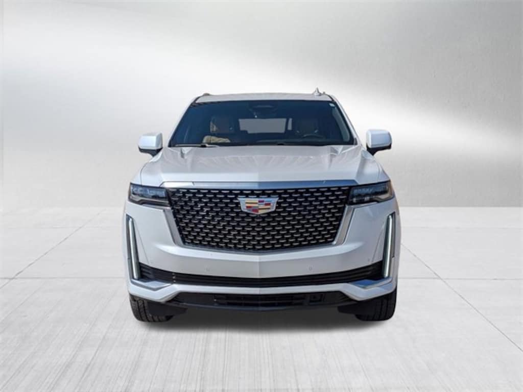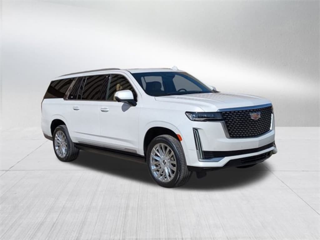Crystal White Tricoat 2021 Cadillac Escalade ESV Premium 10-Speed Automatic with Overdrive 6.2L V8 4WD, 1st 2nd & 3rd Row All-Weather Floor Mats (LPO), Adaptive Cruise Control, Air Ionizer, Air Ride Adaptive Suspension, AKG Studio 19-Speaker Audio System, All-Weather Integrated Cargo Liner (LPO), Automatic Emergency Braking, Automatic Seat Belt Tightening, Automatic temperature control, Door Lock & Latch Shields, Driver Assist Tech Package, Electronic Cruise Control w/Set & Resume Speed, Electronic Limited-Slip Differential, Enhanced Automatic Emergency Braking, Enhanced Automatic Parking Assist, Glass Breakage Sensor, Heads-Up Display, Heated & Ventilated Driver & Front Passenger Seats, Heated rear seats, Heated steering wheel, Hitch Guidance w/Hitch View, Illuminating Front & Rear Sill Plates, In-Vehicle Trailering System App, Integrated Trailer Brake Controller, Interior Protection Package (LPO), Lane Change Alert w/Side Blind Zone Alert, Lane Keep Assist w/Lane Departure Warning, Magnetic Ride Control Suspension, Mechanical Limited-Slip Differential, Navigation System, Performance Package, Power Liftgate, Power Panoramic Tilt-Sliding Sunroof, Preferred Equipment Group 1SB, Rain sensing wipers, Rear Camera Mirror, Rear Camera Mirror Washer, Rear Cross Traffic Alert, Rear Seat Entertainment System, Reconfigurable Full-Color Head-Up Display, Remote keyless entry, Reverse Automatic Braking, Running Board Assist Steps, Soft Closing Front & Rear Doors, Theft-Deterrent Alarm System, Trailer Side Blind Zone Alert, Vehicle Inclination Sensor, Vehicle Interior Movement Sensor, 16.9 Diagonal OLED Infotainment Screen, 19 Speakers, 2-Presets Memory For Driver Seat Adjuster, 3.23 Axle Ratio, 3rd row seats: split-bench, 4-Way Power Driver Lumbar Seat Adjuster, 4-Way Power Front Passenger Lumbar Seat Adjuster, 4-Wheel Disc Brakes, 8-Way Power Driver Seat Adjuster, 8-Way Power Front Passenger Seat Adjuster, ABS brakes, Air Conditioning, Alloy wheels, AM/FM radio: SiriusXM with 360L, Apple CarPlay/Android Auto, Audio memory, Auto High-beam Headlights, Auto tilt-away steering wheel, Auto-dimming door mirrors, Brake assist, Bumpers: body-color, Compass, Delay-off headlights, Driver door bin, Driver vanity mirror, Dual front impact airbags, Dual front side impact airbags, Electronic Stability Control, Emergency communication system: OnStar and Cadillac connected services capable, Four wheel independent suspension, Front anti-roll bar, Front Bucket Seats, Front Center Armrest w/Storage, Front dual zone A/C, Front reading lights, Fully automatic headlights, Garage door transmitter, HD Radio, Heated door mirrors, Heated Driver & Front Passenger Seats, Heated front seats, Illuminated entry, Leather Seating Surfaces w/Mini-Chevron Perf Inserts, Leather steering wheel, Low tire pressure warning, Memory seat, Occupant sensing airbag, Outside temperature display, Overhead airbag, Overhead console, Panic alarm, Passenger door bin, Passenger vanity mirror, Power door mirrors, Power driver seat, Power moonroof, Power passenger seat, Power steering, Power windows, Power-Retractable Assist Steps, Premium Smooth Ride Suspension, Radio data system, Radio: AM/FM/SiriusXM w/Navigation, Rear air conditioning, Rear anti-roll bar, Rear reading lights, Rear window defroster, Rear window wiper, Roof rack: rails only, Security system, SiriusXM w/360L, Speed control, Split folding rear seat, Spoiler, Steering wheel memory, Steering wheel mounted audio controls, Tachometer, Teen Driver, Telescoping steering wheel, Tilt steering wheel, Traction control, Trip computer, Turn signal indicator mirrors, Variably intermittent wipers, Ventilated front seats, Voltmeter, Wheels: 22 14-Spoke Alloy w/Polished Finish, Wireless Apple CarPlay/Wireless Android Auto, 4WD, 1st 2nd & 3rd Row All-Weather Floor Mats (LPO), Adaptive Cruise Control, Air Ionizer, Air Ride Adaptive Suspension, AKG Studio 19-Speaker Audio System, All-Weather Integrated Cargo Liner (LPO), Automatic Emergency