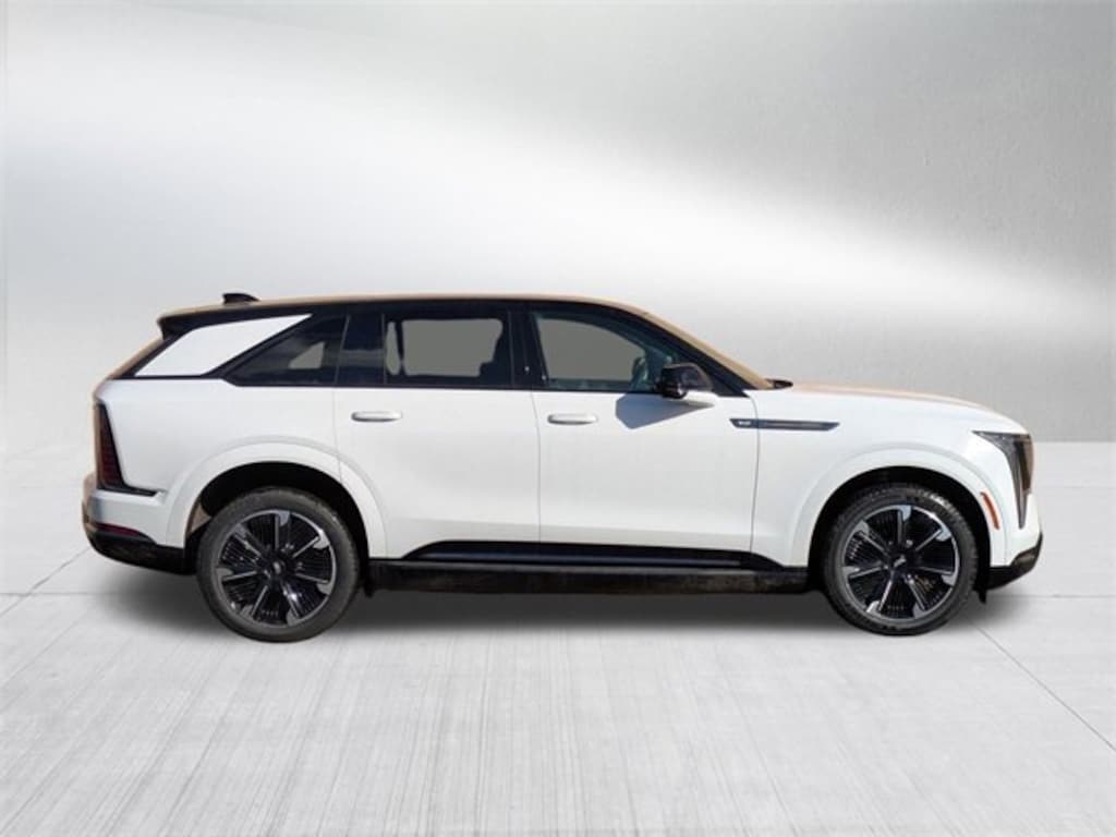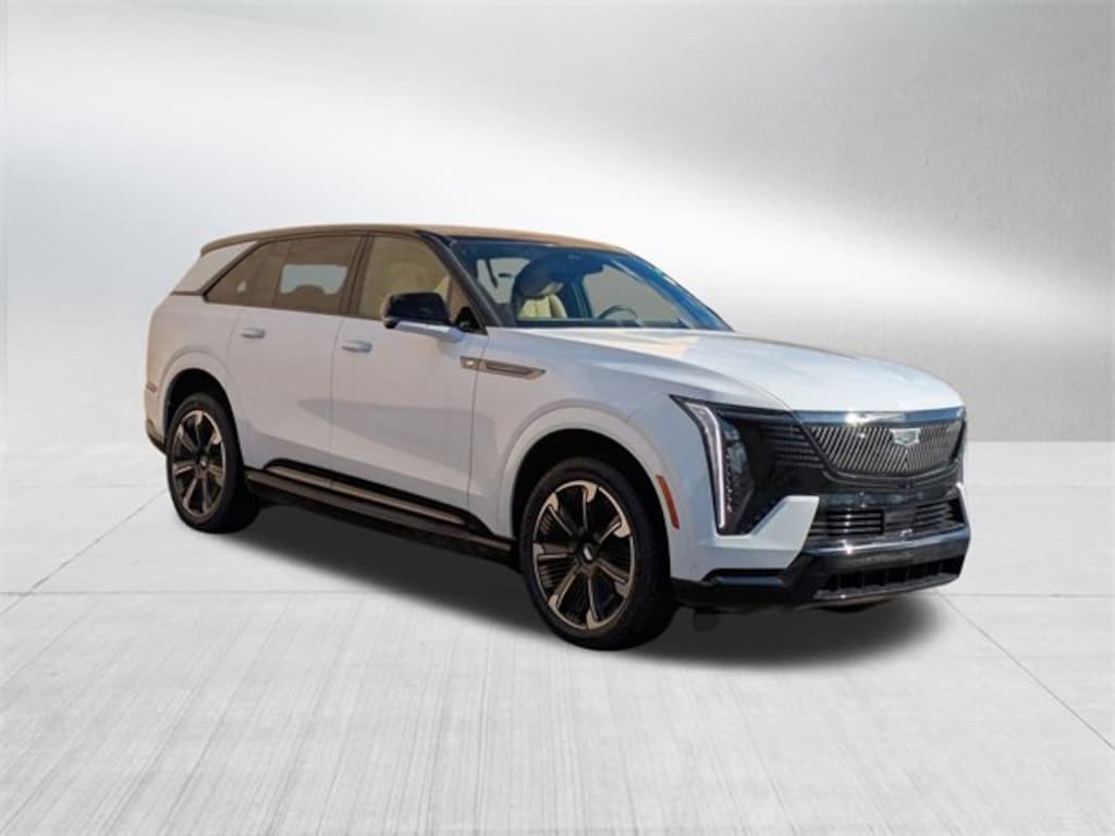 Summit White 2025 Cadillac Escalade IQ Sport 2 1-Speed Automatic Electric ZEV 680hp 3rd row seats: split-bench, 4-Way Power Driver Lumbar Seat Adjuster, 4-Wheel Disc Brakes, 8-Way Power Driver Seat Adjuster, 8-Way Power Front Passenger Seat Adjuster, ABS brakes, Adaptive suspension, Air Conditioning, Alloy wheels, AM/FM radio: SiriusXM with 360L, Audio memory, Auto High-beam Headlights, Auto-dimming door mirrors, Auto-dimming Rear-View mirror, Auto-leveling suspension, Automatic temperature control, Black 2-Tone Roof, Bluetooth Headphones By AKG (LPO), Brake assist, Bumpers: body-color, Compass, Delay-off headlights, Driver door bin, Driver vanity mirror, Dual front impact airbags, Dual front side impact airbags, Electronic Stability Control, Emergency communication system: OnStar and Cadillac connected services capable, Four wheel independent suspension, Front anti-roll bar, Front Bucket Seats, Front Center Armrest, Front dual zone A/C, Front reading lights, Fully automatic headlights, Garage door transmitter, Google Built-In, Heads-Up Display, Heated door mirrors, Heated Driver & Front Passenger Seats, Heated front seats, Heated rear seats, Heated steering wheel, HVAC memory, Illuminated entry, Knee airbag, Leather steering wheel, Low tire pressure warning, Magnetic Ride Control Suspension, Memory seat, Navigation system: Google Automotive Services Capable, Occupant sensing airbag, Outside temperature display, Overhead airbag, Overhead console, Panic alarm, Passenger door bin, Passenger vanity mirror, Power door mirrors, Power driver seat, Power Liftgate, Power passenger seat, Power steering, Power windows, Radio data system, Radio: Infotainment Experience, Rain sensing wipers, Rear air conditioning, Rear anti-roll bar, Rear dual zone A/C, Rear reading lights, Rear Seat Entertainment System, Rear window defroster, Rear window wiper, Reconfigurable Full-Color Head-Up Display, Remote keyless entry, Security system, SiriusXM w/360L Trial Subscription, Speed control, Speed-sensing steering, Split folding rear seat, Spoiler, Steering wheel mounted audio controls, Telescoping steering wheel, Tilt steering wheel, Traction control, Trip computer, Turn signal indicator mirrors, Variably intermittent wipers, Ventilated front seats, Wheels: 24 7-Spoke Diamond Cut Face Alloy.