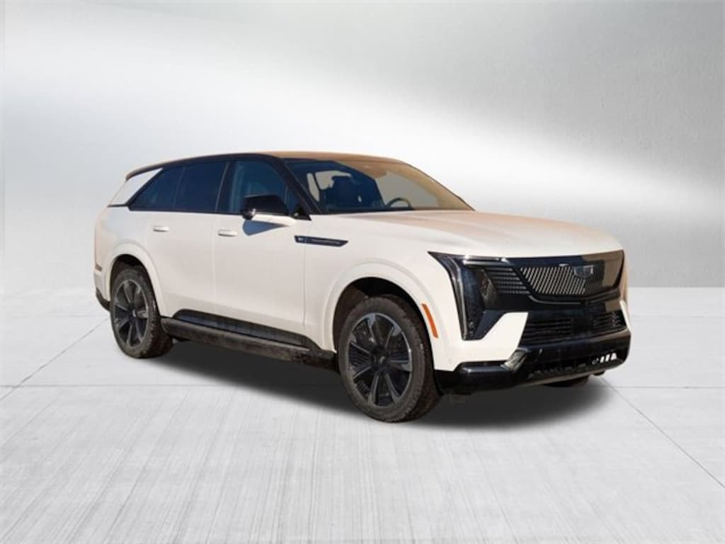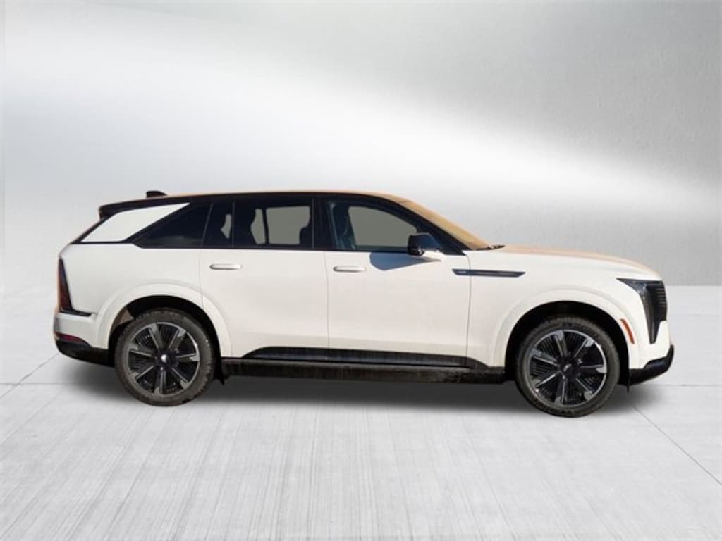 Summit White 2025 Cadillac Escalade IQ Sport 2 1-Speed Automatic Electric ZEV 680hp 3rd row seats: split-bench, 4-Way Power Driver Lumbar Seat Adjuster, 4-Wheel Disc Brakes, 8-Way Power Driver Seat Adjuster, 8-Way Power Front Passenger Seat Adjuster, ABS brakes, Adaptive suspension, Air Conditioning, Alloy wheels, AM/FM radio: SiriusXM with 360L, Audio memory, Auto High-beam Headlights, Auto-dimming door mirrors, Auto-dimming Rear-View mirror, Auto-leveling suspension, Automatic temperature control, Black 2-Tone Roof, Bluetooth Headphones By AKG (LPO), Brake assist, Bumpers: body-color, Compass, Delay-off headlights, Driver door bin, Driver vanity mirror, Dual front impact airbags, Dual front side impact airbags, Electronic Stability Control, Emergency communication system: OnStar and Cadillac connected services capable, Four wheel independent suspension, Front anti-roll bar, Front Bucket Seats, Front Center Armrest, Front dual zone A/C, Front reading lights, Fully automatic headlights, Garage door transmitter, Google Built-In, Heads-Up Display, Heated door mirrors, Heated Driver & Front Passenger Seats, Heated front seats, Heated rear seats, Heated steering wheel, HVAC memory, Illuminated entry, Knee airbag, Leather steering wheel, Low tire pressure warning, Magnetic Ride Control Suspension, Memory seat, Navigation system: Google Automotive Services Capable, Occupant sensing airbag, Outside temperature display, Overhead airbag, Overhead console, Panic alarm, Passenger door bin, Passenger vanity mirror, Power door mirrors, Power driver seat, Power Liftgate, Power passenger seat, Power steering, Power windows, Radio data system, Radio: Infotainment Experience, Rain sensing wipers, Rear air conditioning, Rear anti-roll bar, Rear dual zone A/C, Rear reading lights, Rear Seat Entertainment System, Rear window defroster, Rear window wiper, Reconfigurable Full-Color Head-Up Display, Remote keyless entry, Security system, SiriusXM w/360L Trial Subscription, Speed control, Speed-sensing steering, Split folding rear seat, Spoiler, Steering wheel mounted audio controls, Telescoping steering wheel, Tilt steering wheel, Traction control, Trip computer, Turn signal indicator mirrors, Variably intermittent wipers, Ventilated front seats, Wheels: 24 7-Spoke Diamond Cut Face Alloy.