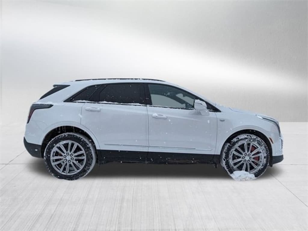 Crystal White Tricoat 2025 Cadillac XT5 Sport 9-Speed Automatic 3.6L V6 DI VVT 14 Speakers, 2-Way Power Driver Lumbar Control Seat Adjuster, 2-Way Power Passenger Lumbar Control Seat Adjuster, 3 Years SiriusXM, 3.49 Axle Ratio, 4-Wheel Disc Brakes, ABS brakes, Adaptive suspension, Air Conditioning, Air Ionizer, Alloy wheels, AM/FM radio: SiriusXM, Audio memory, Auto High-beam Headlights, Auto-dimming door mirrors, Auto-dimming Rear-View mirror, Automatic Dual-Zone Climate Control, Automatic Emergency Braking, Automatic Stop/Start w/Disable, Automatic temperature control, Bodyside moldings, Bose Performance Series 14-Speaker System, Brake assist, Bumpers: body-color, Compass, Delay-off headlights, Driver door bin, Driver vanity mirror, Dual Driver Info Center Display Gauge Cluster, Dual front impact airbags, Dual front side impact airbags, Electronic Stability Control, Emergency communication system: OnStar and Cadillac connected services capable, Floor Liner Package (LPO), Four wheel independent suspension, Front & Rear Contoured Floor Liners (LPO), Front & Rear Park Assist, Front anti-roll bar, Front Bucket Seats, Front Center Armrest, Front dual zone A/C, Front reading lights, Fully automatic headlights, Garage door transmitter, HD Rear Vision Camera, Heated door mirrors, Heated Driver & Front Passenger Seats, Heated front seats, Heated Rear Outboard Seating Positions, Heated steering wheel, Illuminated entry, Inside Rear-View Auto-Dimming Mirror, Integrated Cargo Liner (LPO), Knee airbag, Leather Seating Surfaces w/Mini Perforated Inserts, Low tire pressure warning, Memory seat, Navigation System, Occupant sensing airbag, Outside temperature display, Overhead airbag, Overhead console, Panic alarm, Passenger door bin, Passenger vanity mirror, Performance Suspension, Power door mirrors, Power driver seat, Power Liftgate, Power moonroof: UltraView, Power passenger seat, Power steering, Power windows, Radio data system, Radio: Cadillac User Experience w/Embedded Nav, Rain sensing wipers, Rear anti-roll bar, Rear reading lights, Rear seat center armrest, Rear window defroster, Rear window wiper, Remote keyless entry, Security system, SiriusXM w/360L Trial Subscription, Speed control, Speed-sensing steering, Split folding rear seat, Spoiler, Sport Package 1SF, Steering wheel memory, Steering wheel mounted audio controls, Tachometer, Teen Driver, Telescoping steering wheel, Tilt steering wheel, Traction control, Tri-Zone Automatic Climate Control, Trip computer, Turn signal indicator mirrors, Variably intermittent wipers, Ventilated Driver & Front Passenger Seats, Voltmeter, Wheels: 20 12-Spoke Alloy w/Pearl Nickel Finish, Wireless Apple CarPlay/Wireless Android Auto, Wireless Phone Charging.18/26 City/Highway MPG