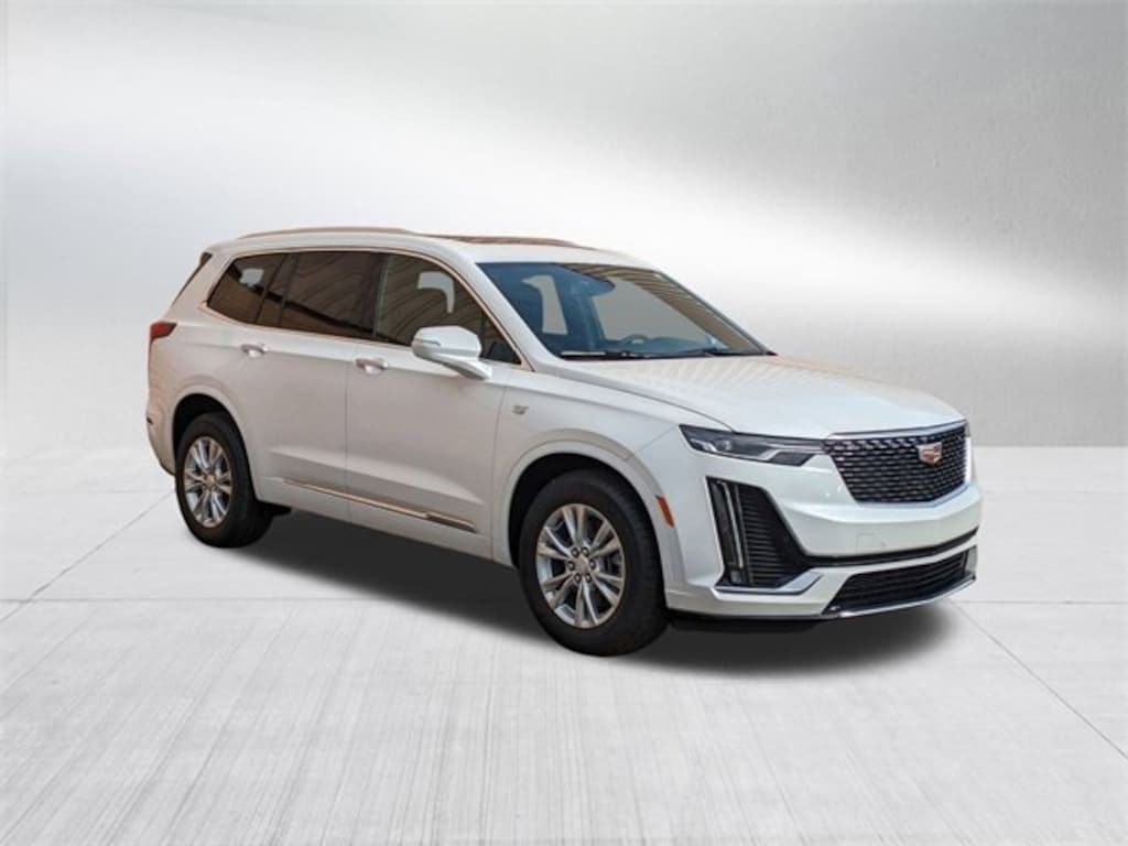 Crystal White Tricoat 2025 Cadillac XT6 Luxury 9-Speed Automatic 2.0L Turbocharged 18 Multi-Spoke Alloy Wheels, 3 Years SiriusXM, 3rd row seats: split-bench, 4-Wheel Disc Brakes, 6-Way Power Front Passenger Seat Adjuster, 8 Speakers, ABS brakes, Air Conditioning, Alloy wheels, AM/FM radio: SiriusXM with 360L, Audio memory, Auto High-beam Headlights, Auto-dimming door mirrors, Auto-dimming Rear-View mirror, Automatic Stop/Start w/Disable, Automatic temperature control, Bose Premium 8-Speaker Audio System, Brake assist, Bumpers: body-color, Cargo Net, Compass, Contoured Floor Liners (LPO), Delay-off headlights, Driver & Front Passenger Heated Seats, Driver door bin, Driver vanity mirror, Dual front impact airbags, Dual front side impact airbags, Electronic Stability Control, Emergency communication system: OnStar and Cadillac connected services capable, Floor Liner Package (LPO), Four wheel independent suspension, Front anti-roll bar, Front Bucket Seats, Front Center Armrest, Front dual zone A/C, Front reading lights, Fully automatic headlights, Garage door transmitter, Heated door mirrors, Heated front seats, Illuminated entry, Integrated Cargo Liner (LPO), Inteluxe Seating Surfaces, Knee airbag, Leather steering wheel, Low tire pressure warning, Memory seat, Occupant sensing airbag, Outside temperature display, Overhead airbag, Overhead console, Panic alarm, Passenger door bin, Passenger vanity mirror, Power door mirrors, Power driver seat, Power Liftgate, Power moonroof: UltraView, Power passenger seat, Power steering, Power windows, Preferred Equipment Group 1SB, Radio data system, Radio: Cadillac User Experience AM/FM Stereo, Rear air conditioning, Rear anti-roll bar, Rear reading lights, Rear seat center armrest, Rear window defroster, Rear window wiper, Remote keyless entry, Ride & Handling Suspension, SiriusXM w/360L, Speed control, Speed-sensing steering, Split folding rear seat, Spoiler, Steering wheel mounted audio controls, Tachometer, Teen Driver, Telescoping steering wheel, Tilt steering wheel, Traction control, Trip computer, Turn signal indicator mirrors, Variably intermittent wipers, Voltmeter, Wheel Locks, Wireless Apple CarPlay/Wireless Android Auto.