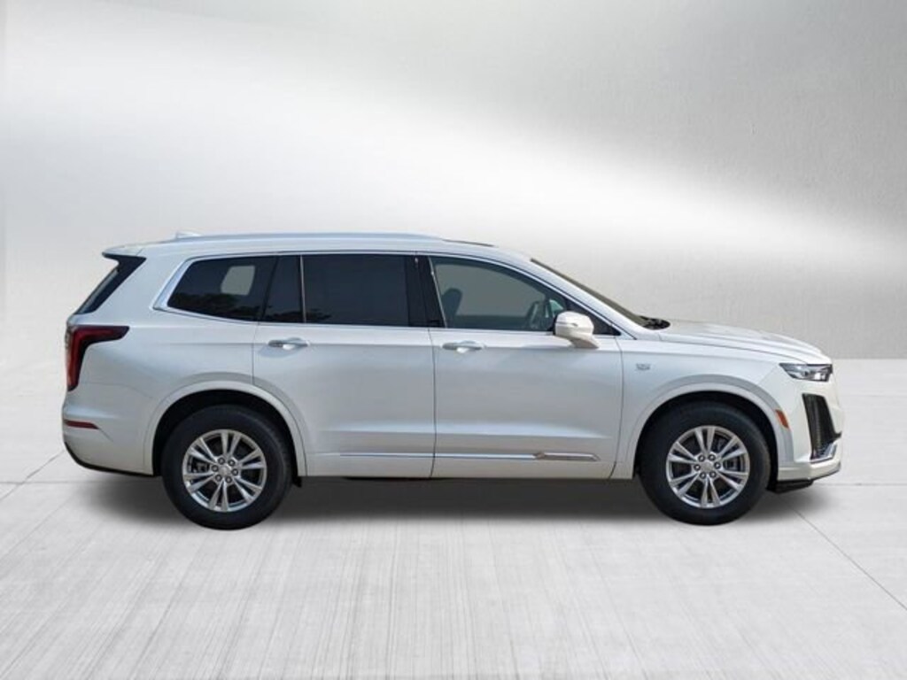 Crystal White Tricoat 2025 Cadillac XT6 Luxury 9-Speed Automatic 2.0L Turbocharged 18 Multi-Spoke Alloy Wheels, 3 Years SiriusXM, 3rd row seats: split-bench, 4-Wheel Disc Brakes, 6-Way Power Front Passenger Seat Adjuster, 8 Speakers, ABS brakes, Air Conditioning, Alloy wheels, AM/FM radio: SiriusXM with 360L, Audio memory, Auto High-beam Headlights, Auto-dimming door mirrors, Auto-dimming Rear-View mirror, Automatic Stop/Start w/Disable, Automatic temperature control, Bose Premium 8-Speaker Audio System, Brake assist, Bumpers: body-color, Cargo Net, Compass, Contoured Floor Liners (LPO), Delay-off headlights, Driver & Front Passenger Heated Seats, Driver door bin, Driver vanity mirror, Dual front impact airbags, Dual front side impact airbags, Electronic Stability Control, Emergency communication system: OnStar and Cadillac connected services capable, Floor Liner Package (LPO), Four wheel independent suspension, Front anti-roll bar, Front Bucket Seats, Front Center Armrest, Front dual zone A/C, Front reading lights, Fully automatic headlights, Garage door transmitter, Heated door mirrors, Heated front seats, Illuminated entry, Integrated Cargo Liner (LPO), Inteluxe Seating Surfaces, Knee airbag, Leather steering wheel, Low tire pressure warning, Memory seat, Occupant sensing airbag, Outside temperature display, Overhead airbag, Overhead console, Panic alarm, Passenger door bin, Passenger vanity mirror, Power door mirrors, Power driver seat, Power Liftgate, Power moonroof: UltraView, Power passenger seat, Power steering, Power windows, Preferred Equipment Group 1SB, Radio data system, Radio: Cadillac User Experience AM/FM Stereo, Rear air conditioning, Rear anti-roll bar, Rear reading lights, Rear seat center armrest, Rear window defroster, Rear window wiper, Remote keyless entry, Ride & Handling Suspension, SiriusXM w/360L, Speed control, Speed-sensing steering, Split folding rear seat, Spoiler, Steering wheel mounted audio controls, Tachometer, Teen Driver, Telescoping steering wheel, Tilt steering wheel, Traction control, Trip computer, Turn signal indicator mirrors, Variably intermittent wipers, Voltmeter, Wheel Locks, Wireless Apple CarPlay/Wireless Android Auto.Odometer is 1863 miles below market average! 21/26 City/Highway MPG