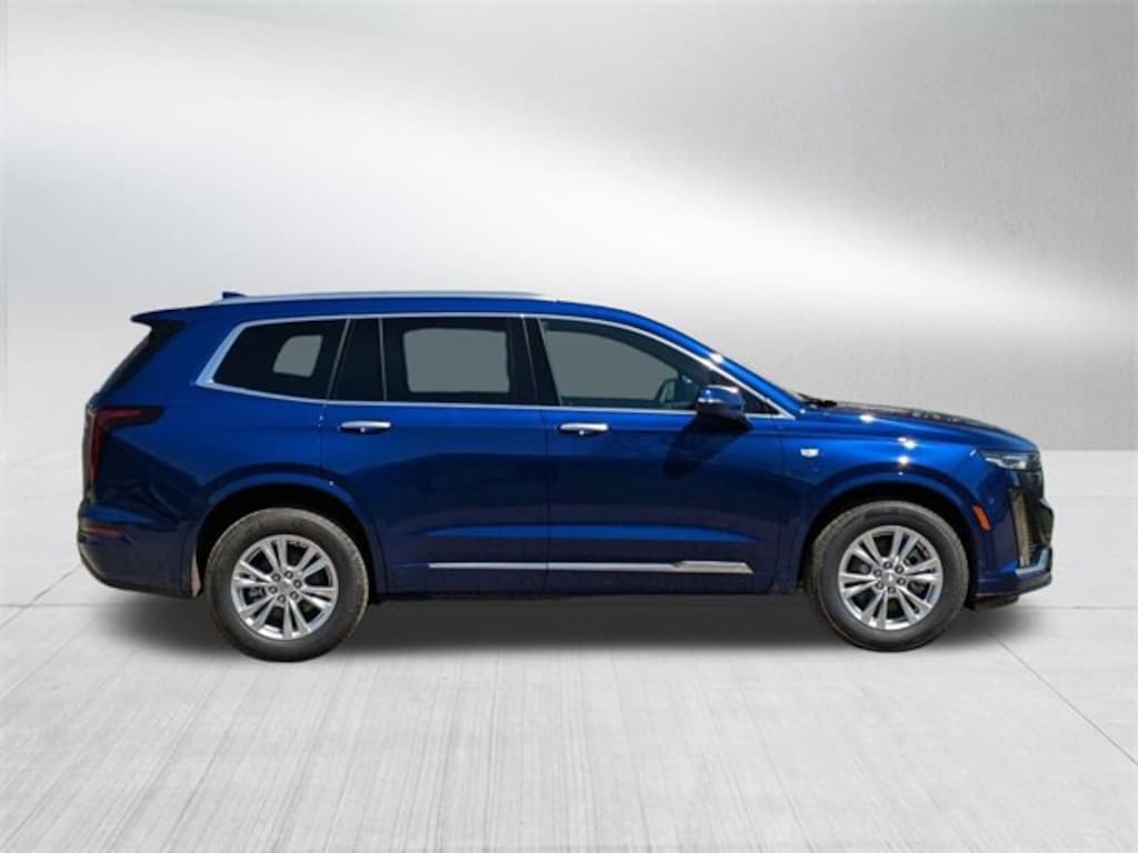 Opulent Blue Metallic 2025 Cadillac XT6 Luxury 9-Speed Automatic 2.0L Turbocharged 18 Multi-Spoke Alloy Wheels, 3 Years SiriusXM, 3rd row seats: split-bench, 4-Wheel Disc Brakes, 6-Way Power Front Passenger Seat Adjuster, 8 Speakers, ABS brakes, Air Conditioning, Alloy wheels, AM/FM radio: SiriusXM with 360L, Audio memory, Auto High-beam Headlights, Auto-dimming door mirrors, Auto-dimming Rear-View mirror, Automatic Stop/Start w/Disable, Automatic temperature control, Bose Premium 8-Speaker Audio System, Brake assist, Bumpers: body-color, Cargo Net, Compass, Contoured Floor Liners (LPO), Delay-off headlights, Driver & Front Passenger Heated Seats, Driver door bin, Driver vanity mirror, Dual front impact airbags, Dual front side impact airbags, Electronic Stability Control, Emergency communication system: OnStar and Cadillac connected services capable, Floor Liner Package (LPO), Four wheel independent suspension, Front anti-roll bar, Front Bucket Seats, Front Center Armrest, Front dual zone A/C, Front reading lights, Fully automatic headlights, Garage door transmitter, Heated door mirrors, Heated front seats, Illuminated entry, Integrated Cargo Liner (LPO), Inteluxe Seating Surfaces, Knee airbag, Leather steering wheel, Low tire pressure warning, Memory seat, Occupant sensing airbag, Outside temperature display, Overhead airbag, Overhead console, Panic alarm, Passenger door bin, Passenger vanity mirror, Power door mirrors, Power driver seat, Power Liftgate, Power moonroof: UltraView, Power passenger seat, Power steering, Power windows, Preferred Equipment Group 1SB, Radio data system, Radio: Cadillac User Experience AM/FM Stereo, Rear air conditioning, Rear anti-roll bar, Rear reading lights, Rear seat center armrest, Rear window defroster, Rear window wiper, Remote keyless entry, Ride & Handling Suspension, SiriusXM w/360L, Speed control, Speed-sensing steering, Split folding rear seat, Spoiler, Steering wheel mounted audio controls, Tachometer, Teen Driver, Telescoping steering wheel, Tilt steering wheel, Traction control, Trip computer, Turn signal indicator mirrors, Variably intermittent wipers, Voltmeter, Wheel Locks, Wireless Apple CarPlay/Wireless Android Auto.21/26 City/Highway MPG