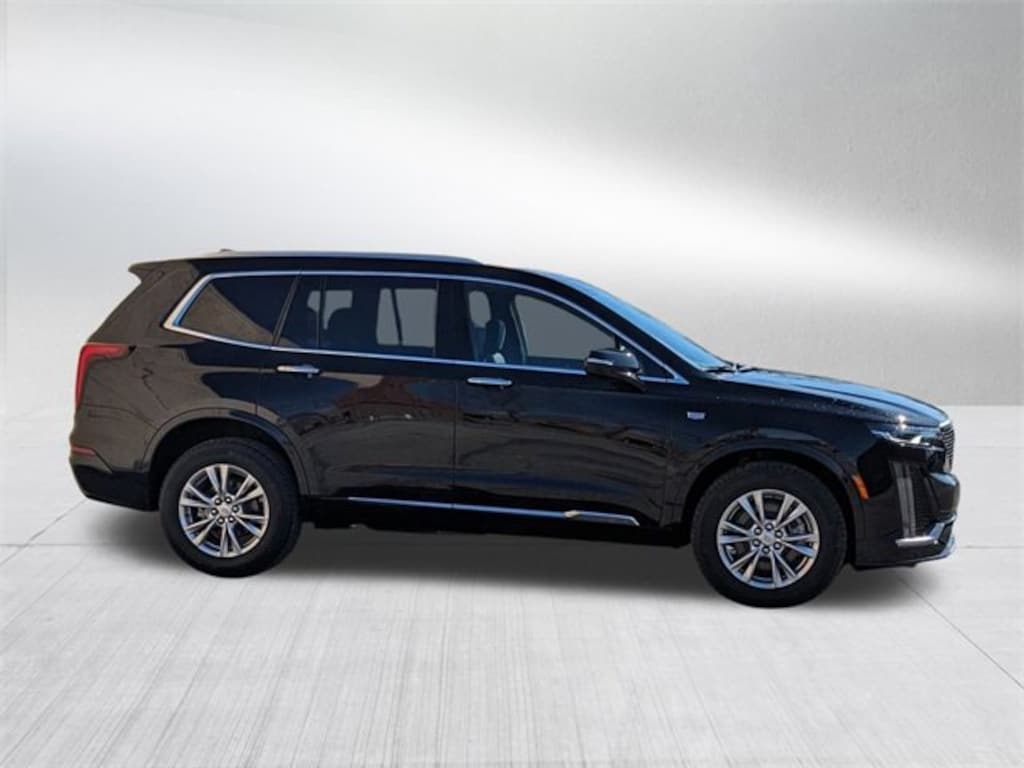 Stellar Black Metallic 2025 Cadillac XT6 Luxury 9-Speed Automatic 2.0L Turbocharged 18 Multi-Spoke Alloy Wheels, 3 Years SiriusXM, 3rd row seats: split-bench, 4-Wheel Disc Brakes, 6-Way Power Front Passenger Seat Adjuster, 8 Speakers, ABS brakes, Air Conditioning, Alloy wheels, AM/FM radio: SiriusXM with 360L, Audio memory, Auto High-beam Headlights, Auto-dimming door mirrors, Auto-dimming Rear-View mirror, Automatic Stop/Start w/Disable, Automatic temperature control, Bose Premium 8-Speaker Audio System, Brake assist, Bumpers: body-color, Cargo Net, Compass, Contoured Floor Liners (LPO), Delay-off headlights, Driver & Front Passenger Heated Seats, Driver door bin, Driver vanity mirror, Dual front impact airbags, Dual front side impact airbags, Electronic Stability Control, Emergency communication system: OnStar and Cadillac connected services capable, Floor Liner Package (LPO), Four wheel independent suspension, Front anti-roll bar, Front Bucket Seats, Front Center Armrest, Front dual zone A/C, Front reading lights, Fully automatic headlights, Garage door transmitter, Heated door mirrors, Heated front seats, Illuminated entry, Integrated Cargo Liner (LPO), Inteluxe Seating Surfaces, Knee airbag, Leather steering wheel, Low tire pressure warning, Memory seat, Occupant sensing airbag, Outside temperature display, Overhead airbag, Overhead console, Panic alarm, Passenger door bin, Passenger vanity mirror, Power door mirrors, Power driver seat, Power Liftgate, Power moonroof: UltraView, Power passenger seat, Power steering, Power windows, Preferred Equipment Group 1SB, Radio data system, Radio: Cadillac User Experience AM/FM Stereo, Rear air conditioning, Rear anti-roll bar, Rear reading lights, Rear seat center armrest, Rear window defroster, Rear window wiper, Remote keyless entry, Ride & Handling Suspension, SiriusXM w/360L, Speed control, Speed-sensing steering, Split folding rear seat, Spoiler, Steering wheel mounted audio controls, Tachometer, Teen Driver, Telescoping steering wheel, Tilt steering wheel, Traction control, Trip computer, Turn signal indicator mirrors, Variably intermittent wipers, Voltmeter, Wheel Locks, Wireless Apple CarPlay/Wireless Android Auto.