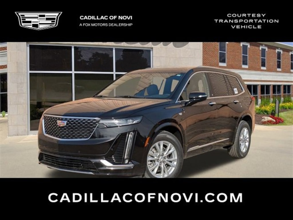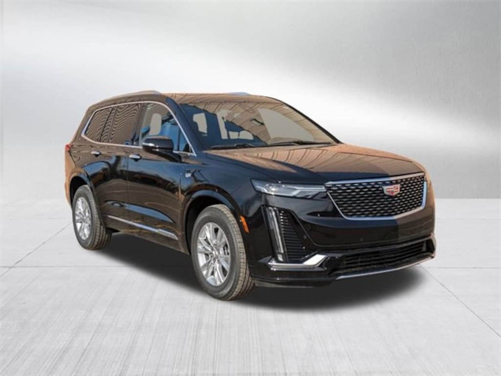 Stellar Black Metallic 2025 Cadillac XT6 Luxury 9-Speed Automatic 2.0L Turbocharged 18 Multi-Spoke Alloy Wheels, 3 Years SiriusXM, 3rd row seats: split-bench, 4-Wheel Disc Brakes, 6-Way Power Front Passenger Seat Adjuster, 8 Speakers, ABS brakes, Air Conditioning, Alloy wheels, AM/FM radio: SiriusXM with 360L, Audio memory, Auto High-beam Headlights, Auto-dimming door mirrors, Auto-dimming Rear-View mirror, Automatic Stop/Start w/Disable, Automatic temperature control, Bose Premium 8-Speaker Audio System, Brake assist, Bumpers: body-color, Cargo Net, Compass, Contoured Floor Liners (LPO), Delay-off headlights, Driver & Front Passenger Heated Seats, Driver door bin, Driver vanity mirror, Dual front impact airbags, Dual front side impact airbags, Electronic Stability Control, Emergency communication system: OnStar and Cadillac connected services capable, Floor Liner Package (LPO), Four wheel independent suspension, Front anti-roll bar, Front Bucket Seats, Front Center Armrest, Front dual zone A/C, Front reading lights, Fully automatic headlights, Garage door transmitter, Heated door mirrors, Heated front seats, Illuminated entry, Integrated Cargo Liner (LPO), Inteluxe Seating Surfaces, Knee airbag, Leather steering wheel, Low tire pressure warning, Memory seat, Occupant sensing airbag, Outside temperature display, Overhead airbag, Overhead console, Panic alarm, Passenger door bin, Passenger vanity mirror, Power door mirrors, Power driver seat, Power Liftgate, Power moonroof: UltraView, Power passenger seat, Power steering, Power windows, Preferred Equipment Group 1SB, Radio data system, Radio: Cadillac User Experience AM/FM Stereo, Rear air conditioning, Rear anti-roll bar, Rear reading lights, Rear seat center armrest, Rear window defroster, Rear window wiper, Remote keyless entry, Ride & Handling Suspension, SiriusXM w/360L, Speed control, Speed-sensing steering, Split folding rear seat, Spoiler, Steering wheel mounted audio controls, Tachometer, Teen Driver, Telescoping steering wheel, Tilt steering wheel, Traction control, Trip computer, Turn signal indicator mirrors, Variably intermittent wipers, Voltmeter, Wheel Locks, Wireless Apple CarPlay/Wireless Android Auto.