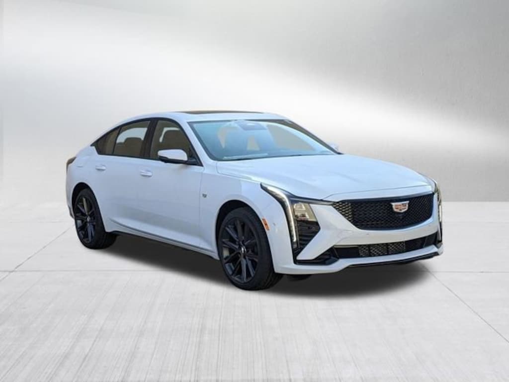 Summit White 2026 Cadillac CT5 Sport 10-Speed Automatic 2.0L I4 Turbocharged DOHC 16V LEV3-SULEV30 237hp 15 Speakers, 4-Wheel Disc Brakes, 8-Way Power Driver Seat Adjuster, 8-Way Power Front Passenger Seat Adjuster, ABS brakes, Adaptive Forward Lighting Headlamps, Air Conditioning, Air Quality Indicator Sensor, AKG 15-Speaker System, All-Weather Cargo Mat (LPO), All-Weather Floor Mats, Alloy wheels, AM/FM radio: SiriusXM with 360L, Apple CarPlay/Android Auto, Auto High-beam Headlights, Auto-dimming door mirrors, Auto-dimming Rear-View mirror, Automatic Leveling System Headlamp Control, Automatic Stop/Start w/Disable, Automatic temperature control, Black Wheel Locks (LPO), Black Wheel Lug Nuts (LPO), Body-Color Heated Power-Adjustable Outside Mirrors, Brake assist, Bumpers: body-color, Cargo Net, Compass, Delay-off headlights, Digital Rear Camera Mirror w/Tilt & Zoom Function, Driver 4-Way Power Lumbar Seat Adjuster, Driver door bin, Driver Manual Cushion Length Adjustment Seat, Driver Power Lumbar Massage Seat, Driver Power Seatback Bolster Adjustment, Driver vanity mirror, Dual front impact airbags, Dual front side impact airbags, Electronic Stability Control, Emergency communication system: OnStar and Cadillac connected services capable, Exterior Parking Camera Rear, Four wheel independent suspension, Front anti-roll bar, Front Bucket Seats, Front Center Armrest, Front Cornering LED Lamps, Front dual zone A/C, Front Passenger 4-Way Power Lumbar Seat Adjuster, Front Passenger Manual Cushion Length Adjustment, Front Passenger Power Lumbar Massage Seat, Front Passenger Power Seatback Bolster Adjustment, Front reading lights, Fully automatic headlights, Garage door transmitter, Hands-Free Decklid Release, Head-Up Display, Heated door mirrors, Heated Driver & Front Passenger Seats, Heated front seats, Heated steering wheel, Illuminated entry, Illuminating Door Handles, Illuminating Front Sill Plates, Inteluxe Seating Surfaces, Interior Protection Package (LPO), Knee airbag, Leather steering wheel, Low tire pressure warning, Memory seat, Navigation System, Occupant sensing airbag, Outside temperature display, Overhead airbag, Overhead console, Panic alarm, Passenger door bin, Passenger vanity mirror, Pollutant/Odor/Fine Dust Air Filter, Power door mirrors, Power driver seat, Power passenger seat, Power steering, Power windows, Preferred Equipment Group 1SE, Premium Headlamp System, Radio data system, Radio: Google Built-In Infotainment Experience, Rain sensing wipers, Rear anti-roll bar, Rear reading lights, Rear seat center armrest, Rear window defroster, Remote keyless entry, SiriusXM w/360L Trial Subscription, Speed control, Speed-sensing steering, Split folding rear seat, Spoiler, Steering wheel memory, Steering wheel mounted audio controls, Tachometer, Technology Package, Telescoping steering wheel, Tilt steering wheel, Traction control, Trip computer, Turn signal indicator mirrors, UltraView Dual Pane Sunroof, Variably intermittent wipers, Ventilated Driver & Front Passenger Seats, Voltmeter, Wheels: 19 Alloy w/Pearl Nickel Finish, Wheels: 19 Alloy w/Satin Graphite Finish.